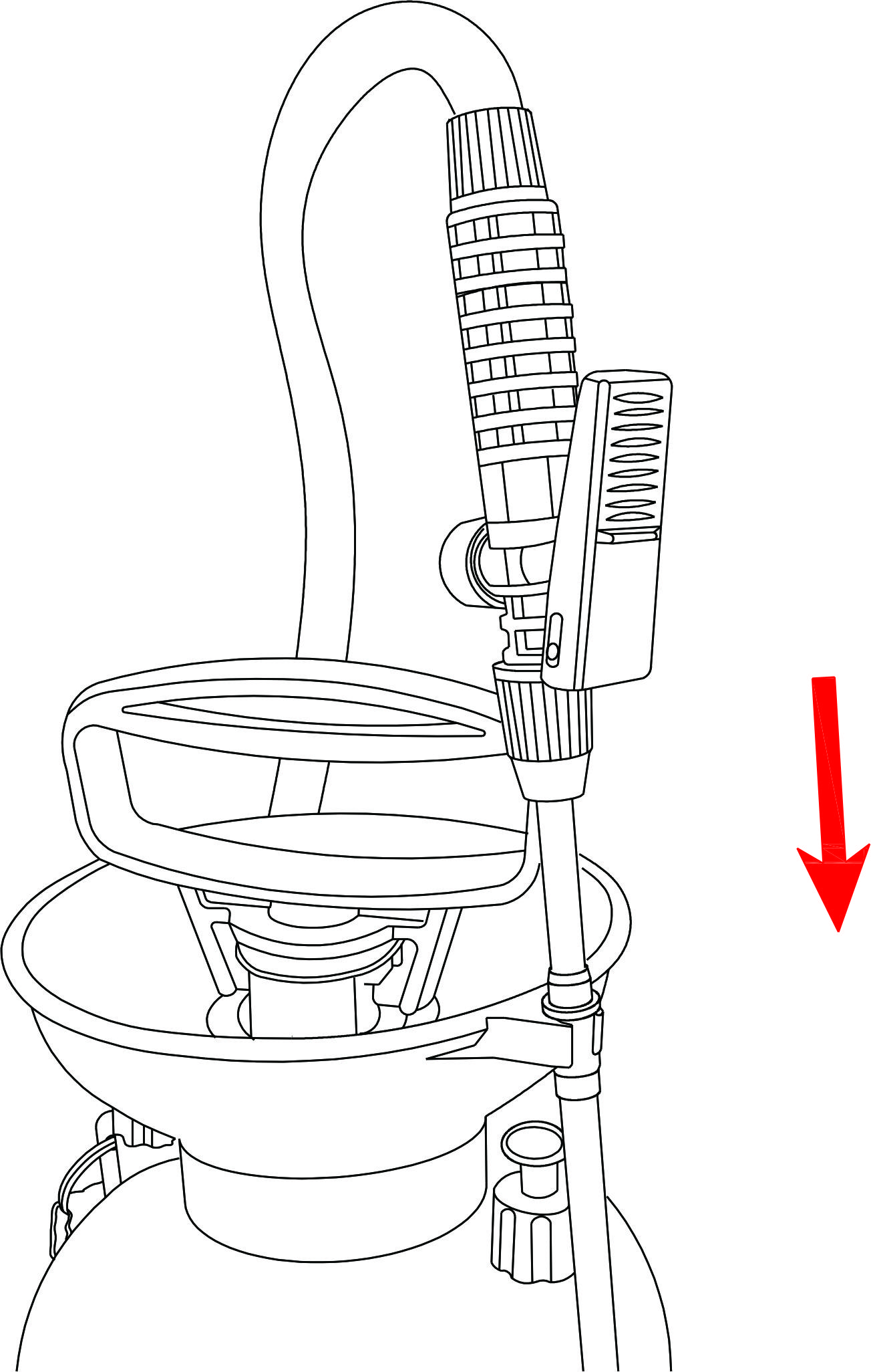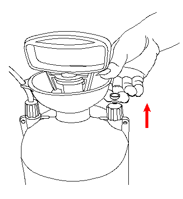 ملحوظة: سيتم الحفاظ على الضغط المتبقي في الخزان حتى بعد انتهاء الرش بفضل صمام التنظيم. يرجى تحرير الضغط قبل إزالة المضخة باتباع التعليمات (كما هو موضح في صمام التنفيس)