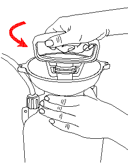 رش الهواء بدلا من الماء | · ينفصل خرطوم الشفط الموجود داخل الخزان | · قم بإزالة غطاء الخرطوم وأخرج خرطوم الشفط لإحكام ربطه. |
